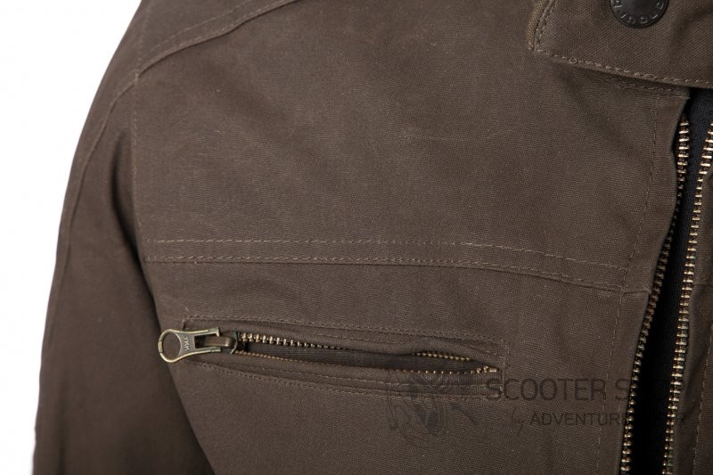 • Prodyšný a větru odolný vnější plášť z voskovaného bavlněného kanvasu