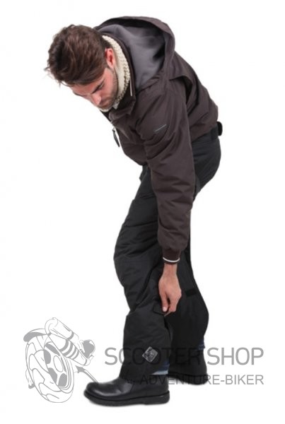 Jsou vyrobeny z voděodpudivého materiálu (silného NYLONU) a podšity výhřevnou výstelkou. Kalhoty může požít jak spolujezdec, tak i řidič.