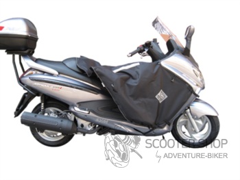 Je speciálně navržená a vyrobená deka na skútry, která slouží jako ochrana před nepřízní počasí.