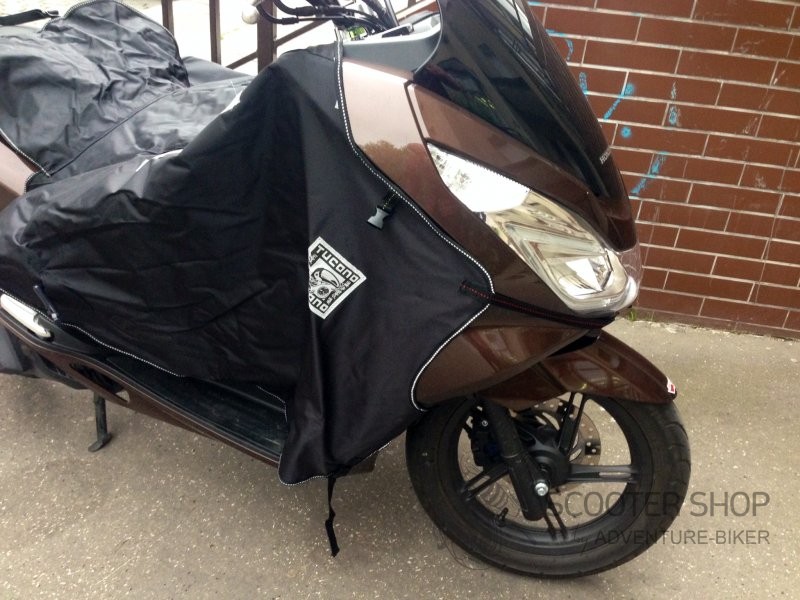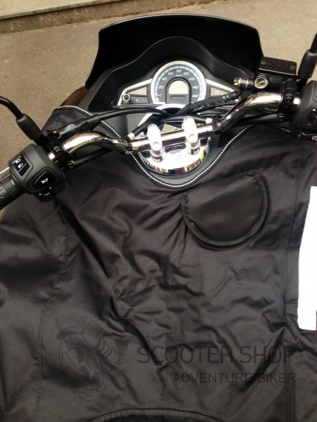 Je speciálně navržená a vyrobená deka na skútry, která slouží jako ochrana před nepřízní počasí.