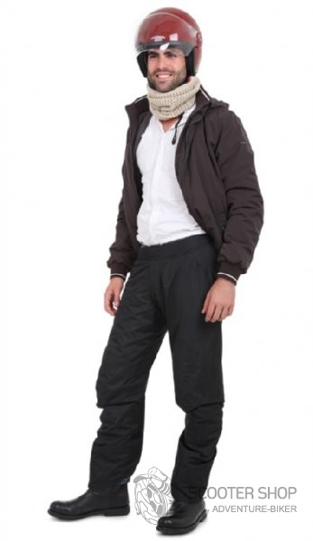 Jsou vyrobeny z voděodpudivého materiálu (silného NYLONU) a podšity výhřevnou výstelkou. Kalhoty může požít jak spolujezdec, tak i řidič.